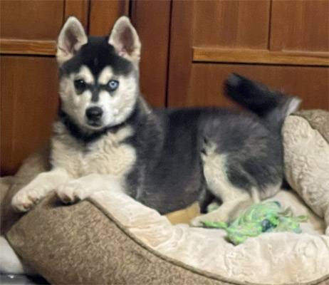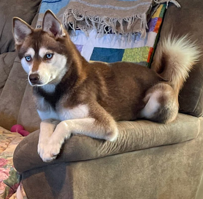 Peaches is our gorgeous girl from Angela Davis of Pocket Huskies. Peaches is sweet and loving.